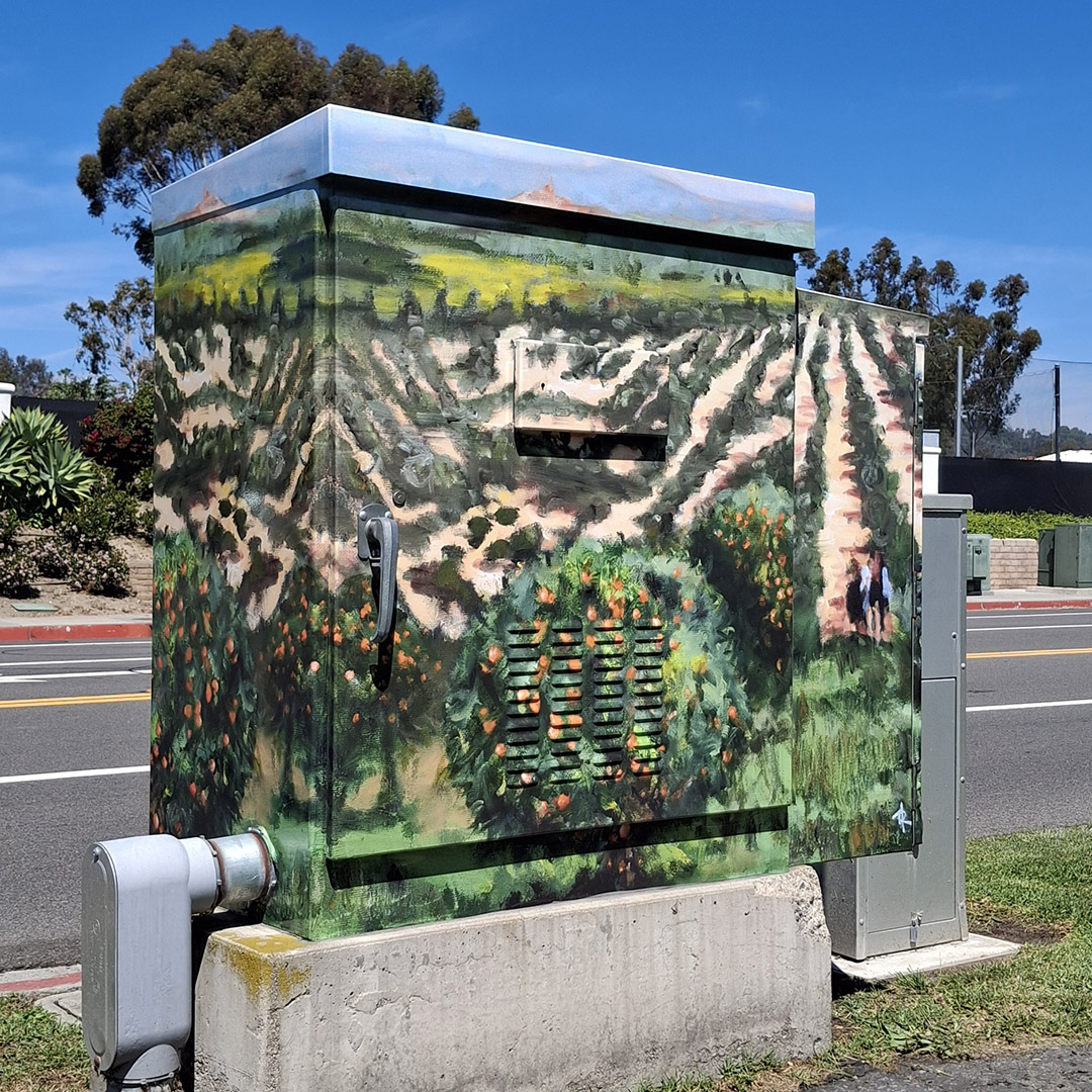 TASJA transformed three ordinary traffic signal boxes into vibrant reminders of San Juan Capistrano’s agricultural past by wrapping them with stunning images of orange groves. These wraps, vinyl wraps of oil paintings created by local artist Randall Holbrook, draw directly from historic photos of the Stroschein Orchards that once flourished right here. Now, at the intersections of Rancho Viejo and Calle Arroyo, Calle Arroyo and La Novia, and La Novia and San Juan Creek, drivers and pedestrians get a beautiful glimpse of the citrus groves that shaped our community.